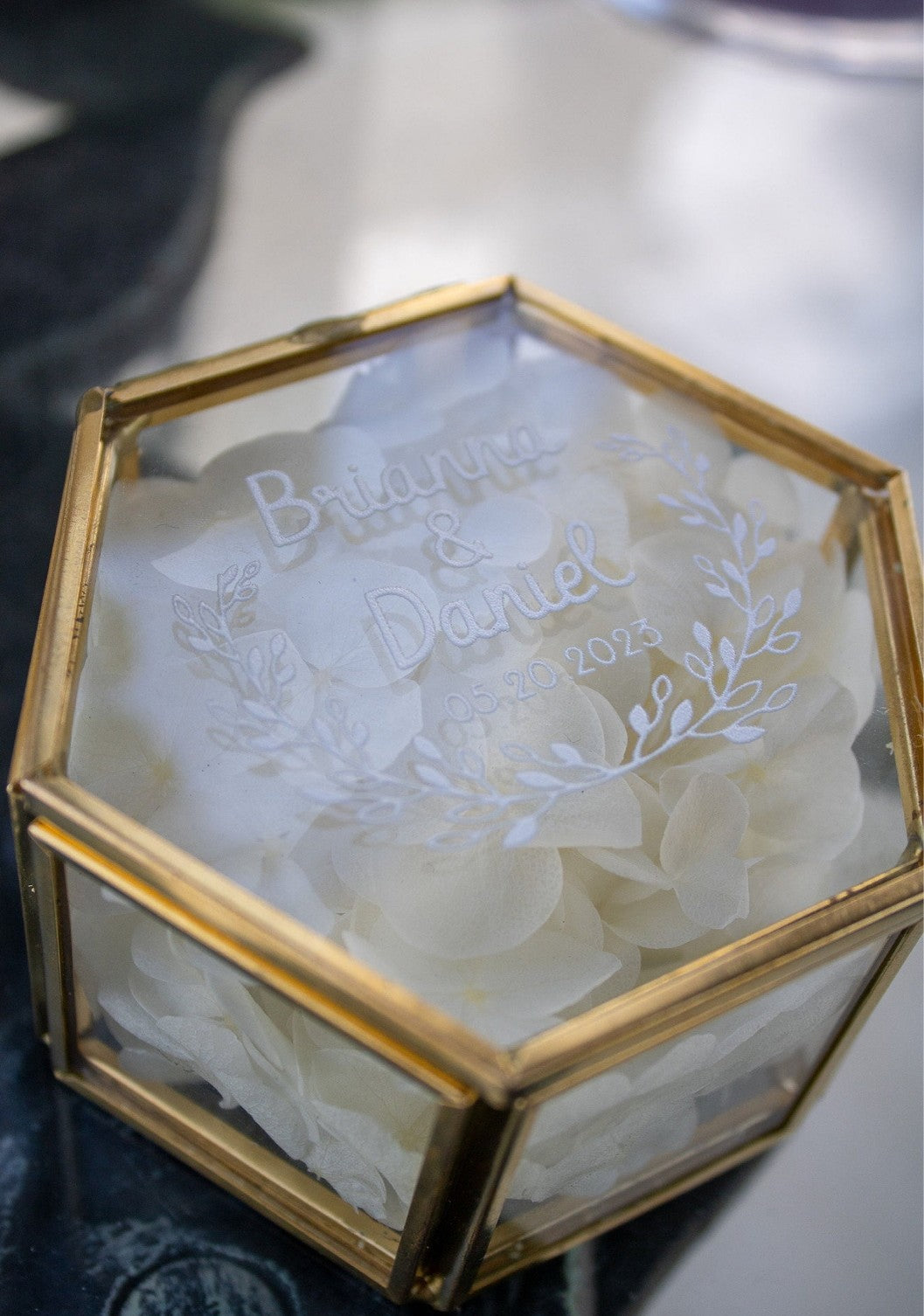 Transformez votre événement mémorable en un moment unique avec notre magnifique boîte à alliances, ornée de fleurs séchées. Conçue avec soin par nos artisans expérimentés, elle constitue l’accessoire idéal pour un porteur d’alliances, ajoutant une touche de magie à votre cérémonie.